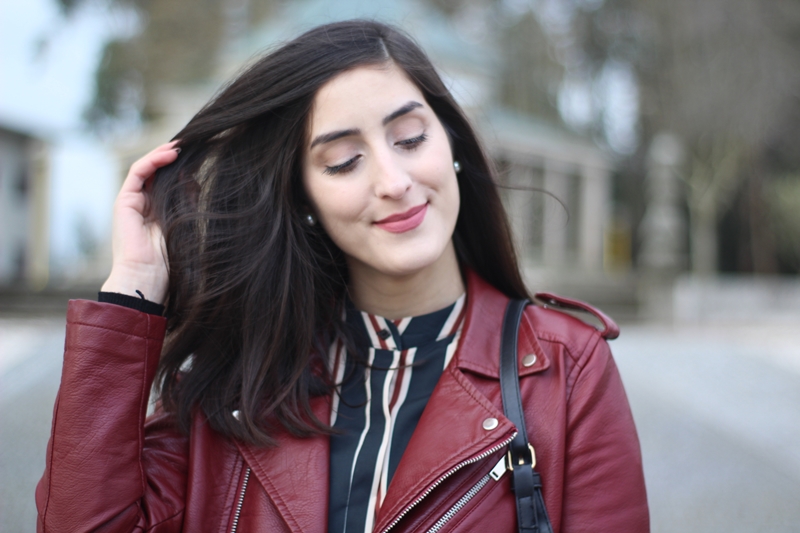 Hoje resolvi trazer-vos mais um look e mais uma vez decidi sair um pouco da minha zona de conforto e utilizar algo diferente. Optei por um vestido listrado muito giro que recebi da Zaful recentemente e coloquei com ele os ténis mais lindos de sempre que BTW também são da Zaful. Por fim coloquei a minha leather jacket bordeaux que já mostrei aqui num look anterior, espero que gostem.