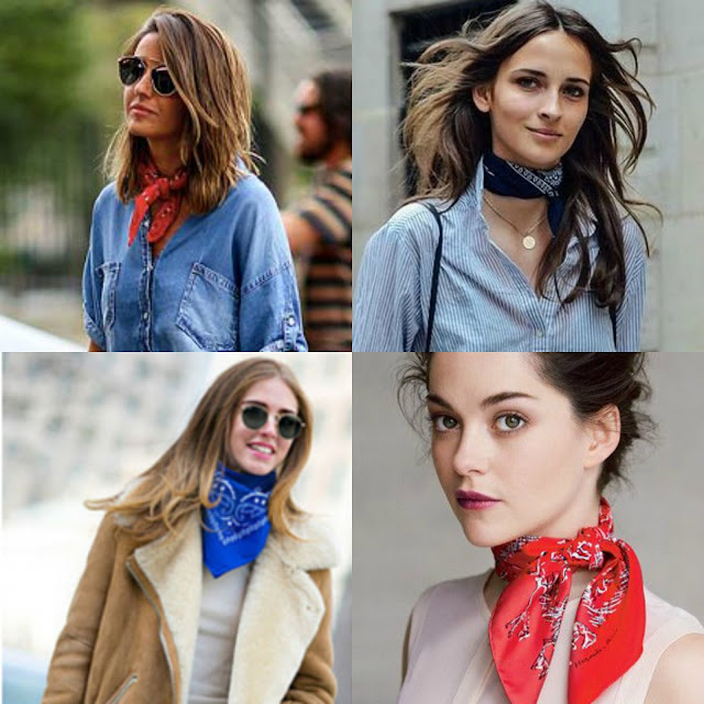 Hoje venho falar-vos de algo que se tem visto muito e que pessoalmente estou a adorar. Lenços estilo anos 70, mas não são uns lenços quaisquer, estou a referir-me àqueles lenços quadrados com um padrão super característico e que existem em variadíssimas cores (para quem ainda não percebeu vai lá chegar mais à frente).